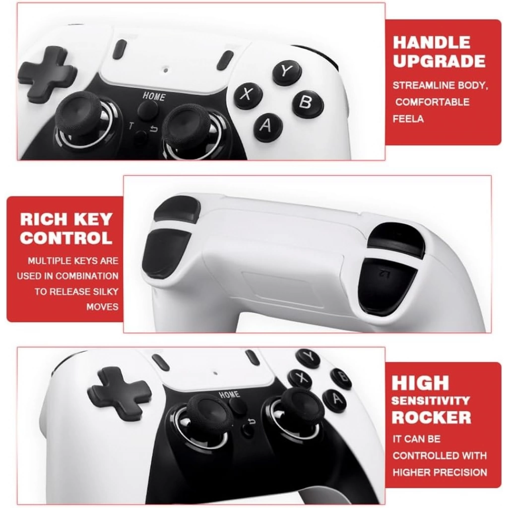Los mandos con conexión inalámbrica 2.4GHZ cuentan con funcionalidades que te encantarán, como la posibilidad de guardar partida o pausarla. Llévatelos a cualquier parte sin necesidad de ningún cable para continuar con tu partida en otra pantalla. Funcionan mediante 2 pilas, AAA INCLUIDAS EN EL PACK.