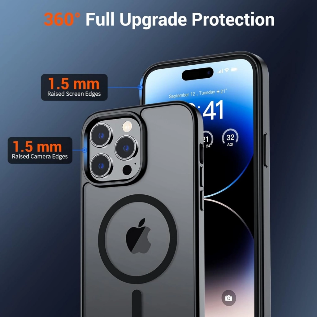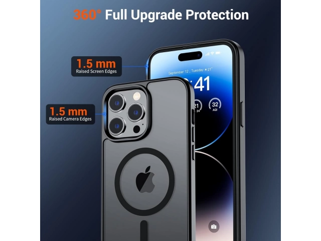 Protege tu iPhone 14 Pro Max con esta funda protectora color negro mate compatible con MagSafe. Su diseño delgado y preciso se adapta perfectamente al dispositivo, ofreciendo una protección confiable contra caídas, golpes y rayones del uso diario.