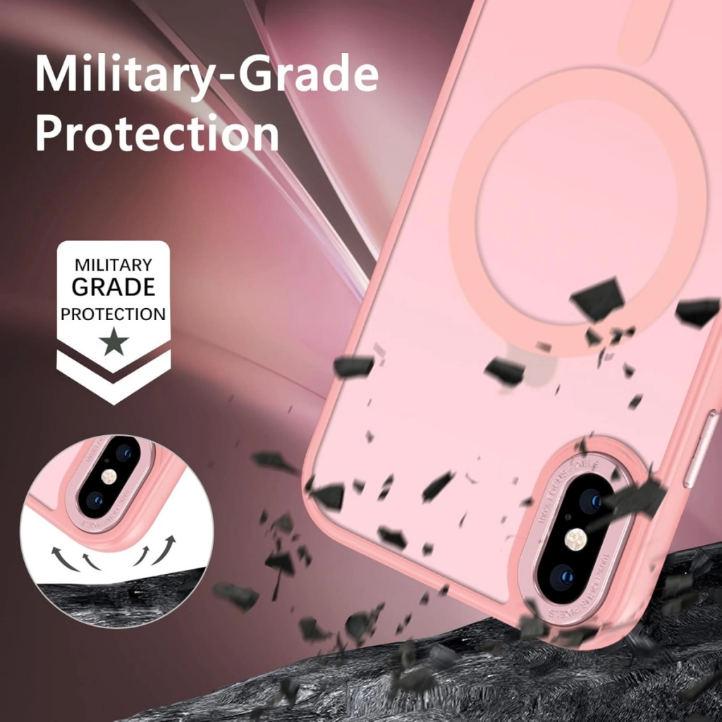 Protege tu iPhone X con estilo gracias a esta funda protectora color rosa mate compatible con MagSafe. Su diseño delgado y preciso se adapta perfectamente al dispositivo, ofreciendo protección contra caídas, golpes y rayones del uso diario. El acabado rosa mate antideslizante brinda un agarre seguro y evita marcas de huellas, manteniendo tu iPhone siempre limpio y con un look moderno y elegante. Gracias a su compatibilidad con MagSafe, podrás usar cargadores y accesorios magnéticos sin retirar la funda. Características principales: Compatible exclusivamente con iPhone X. Color rosa mate elegante y sofisticado. Totalmente compatible con MagSafe. Acabado antideslizante y resistente a rayones. Protección confiable contra caídas e impactos. Ajuste preciso con acceso a todos los botones y puertos. Ideal para quienes buscan protección, estilo y funcionalidad MagSafe en un diseño práctico y moderno.