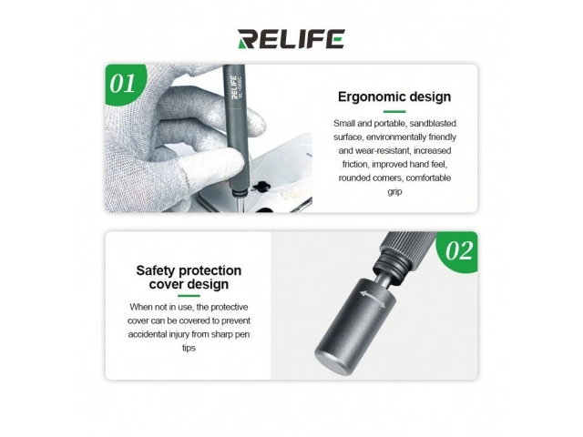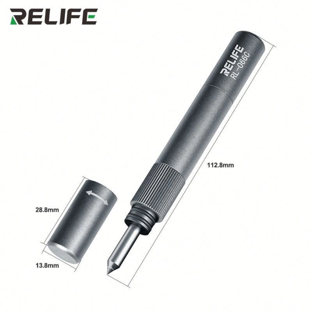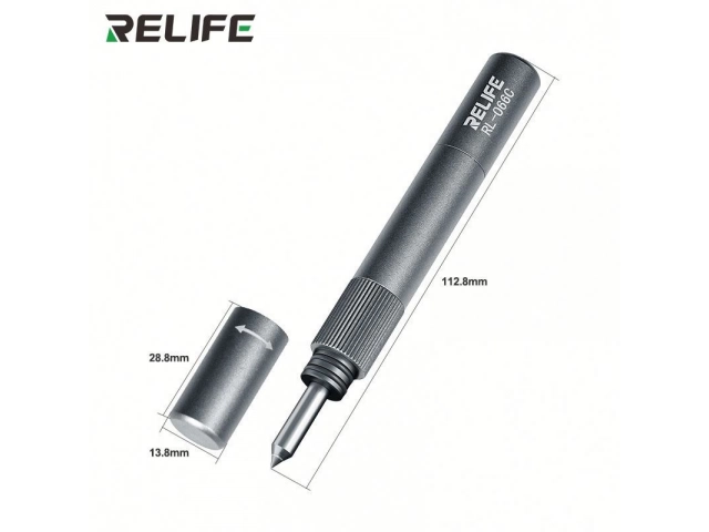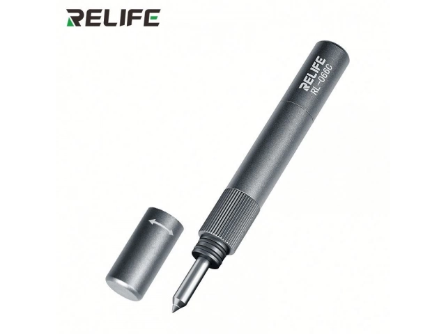 La RELIFE RL-066C es un bolígrafo/punzón de demolición diseñado específicamente para la reparación y desmontaje seguros de las cubiertas traseras de vidrio y módulos de cámara de teléfonos móviles. Es ampliamente utilizado por técnicos de reparación de teléfonos debido a su fuerza de impacto ajustable.