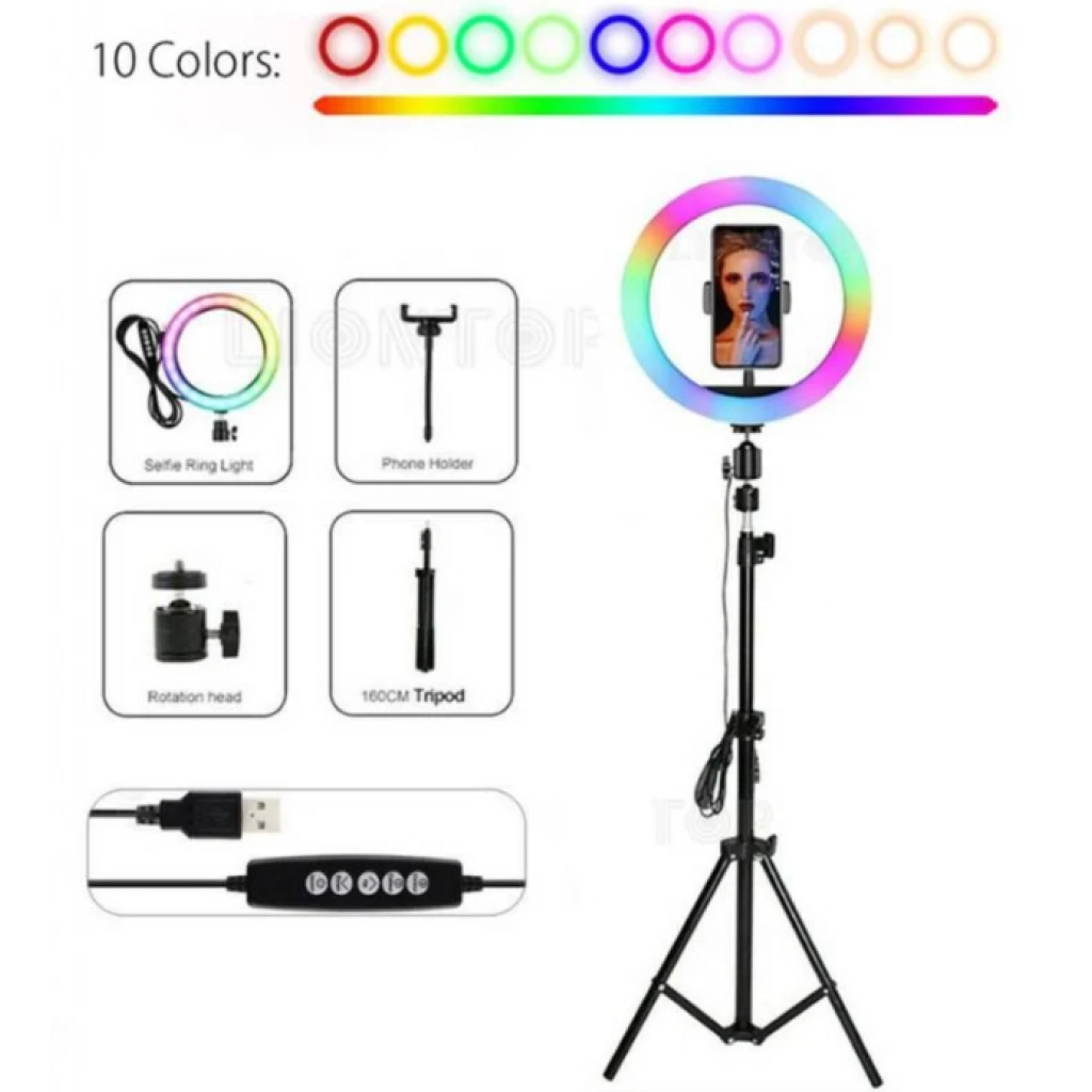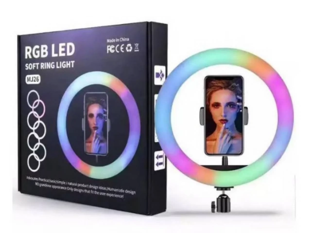 ARO LUZ LED 26 CM RGB COLORES + TRÍPODE 2.10 METROS KIT