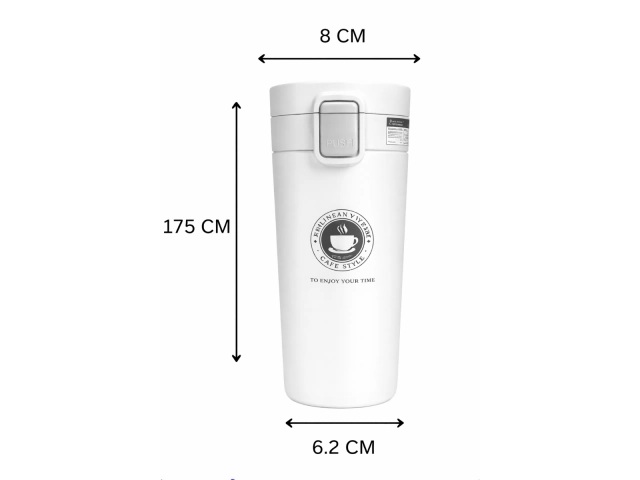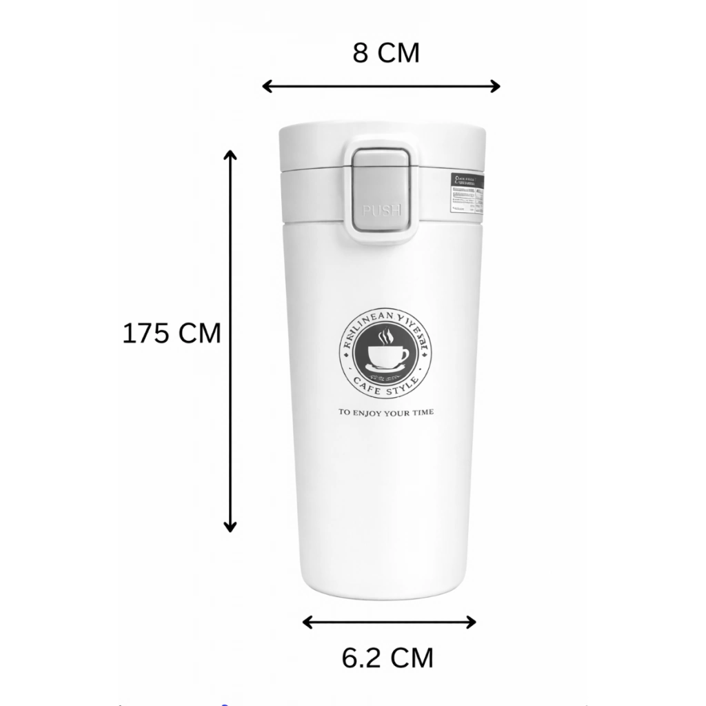 CALIDAD - Hecha de acero inoxidable de alta calidad, artesanal fina, que puede estar en contacto con alimentos. Sin plomo, antioxidante, resistente a la corrosión, duradera y fácil de limpiar. SELLO SÚPER HERMÉTICO - La boca de la botella está diseñada con una hebilla de seguridad, que puede abrir fácilmente la tapa de la botella con un solo clic, bloquear eficazmente la temperatura, sellar fuertemente y evitar fugas. DISEÑO ANTIDESLIZANTE INFERIOR - La taza de café tiene una almohadilla de silicona antideslizante en el Fondo de la taza. La taza no es fácil de caer y no daña la Mesa cuando entra en contacto con la Mesa. MANTENER CALIENTE Y MANTENER FRÍO - Cuando la temperatura ambiente es de 15 a 25 ° c, nuestro producto mantiene la temperatura del líquido, manteniendo el calor por encima de 70 ° C durante hasta 6 horas, y el líquido se enfría por debajo de 8 ° C durante hasta 6 horas. TERMO ACERO INOXIDABLE MULTIFUNCIONAL - Puedes usar esta taza para disfrutar de tu café, té, vino, leche, jugo. Uso termo de café de moda en automóviles, trabajo, escuelas, deportes al aire libre y viajes. MEDIDAS Diámetro superior: 8 cm Diámetro inferior: 6,2 cm Altura: 17.5 cm