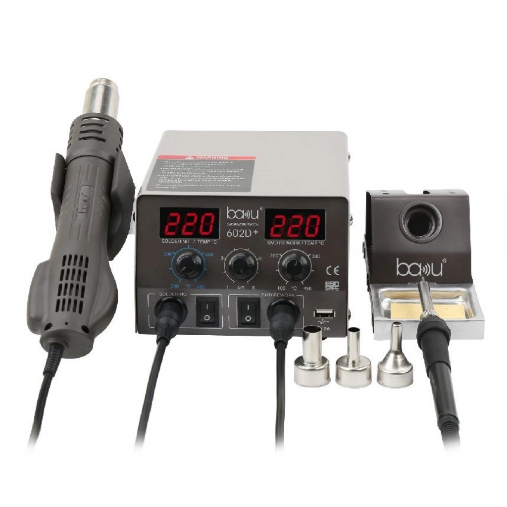 BAKU BA-909D+ -Estación de Soldadura Todo en 1 : Cautín + Aire Caliente + Plancha Separadora